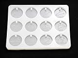12星座をモチーフにしたコインのようなチャームが作れるシリコンモールドです。 貫通穴があいているので、出来上がった後に穴あけする手間が不要です。 樹脂粘土で型抜きする場合は、型から取り出しやすいよう、オイルなどを塗ってから粘土を詰めて抜いてください。