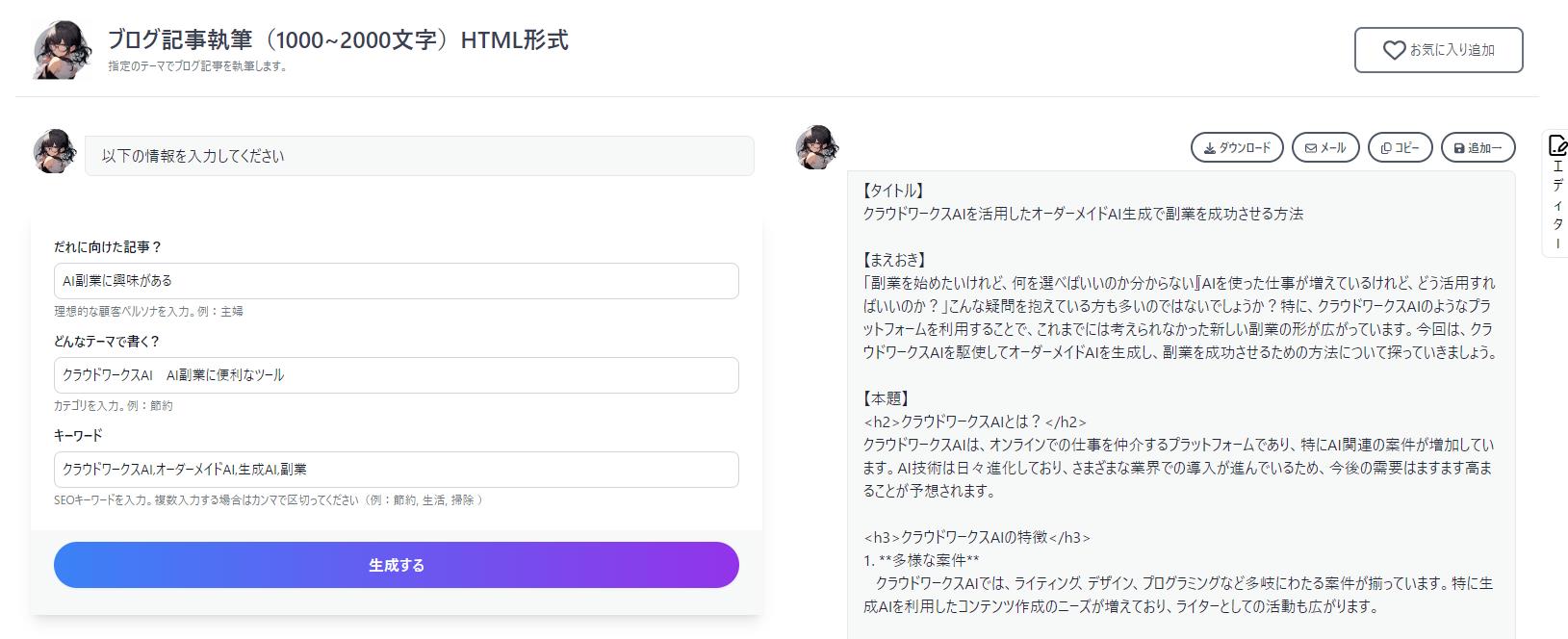 * **読者の行動を促す**:最後に、読者に「クラウドワークスでAI副業を始めよう」と促す言葉を加えました。