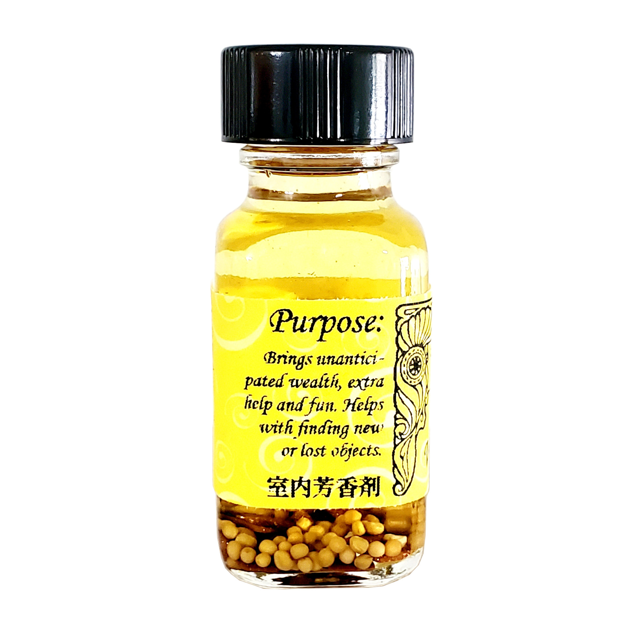 このオイルは思いがけない良い物をもたらしてくれます。みなさん、お金を拾ったことはありませんか? 誰かが何かをしてくれたことで、あなたの仕事量が結果減り、助けられたことはありませんか? このオイルは思いもかけないうれしい驚きをもたらしてくれます。オイルには、幸運のためにライムが入り、うれしい人生のためにココナッツ、平和で幸せなエナジーのためにベチベルソウが入っています。石は富と贅沢さのためにゴールドストーン。ハーブは紛失物が戻ってくる、新しものをみつけると古くから知られるヒメウイキョウの実が入っています。