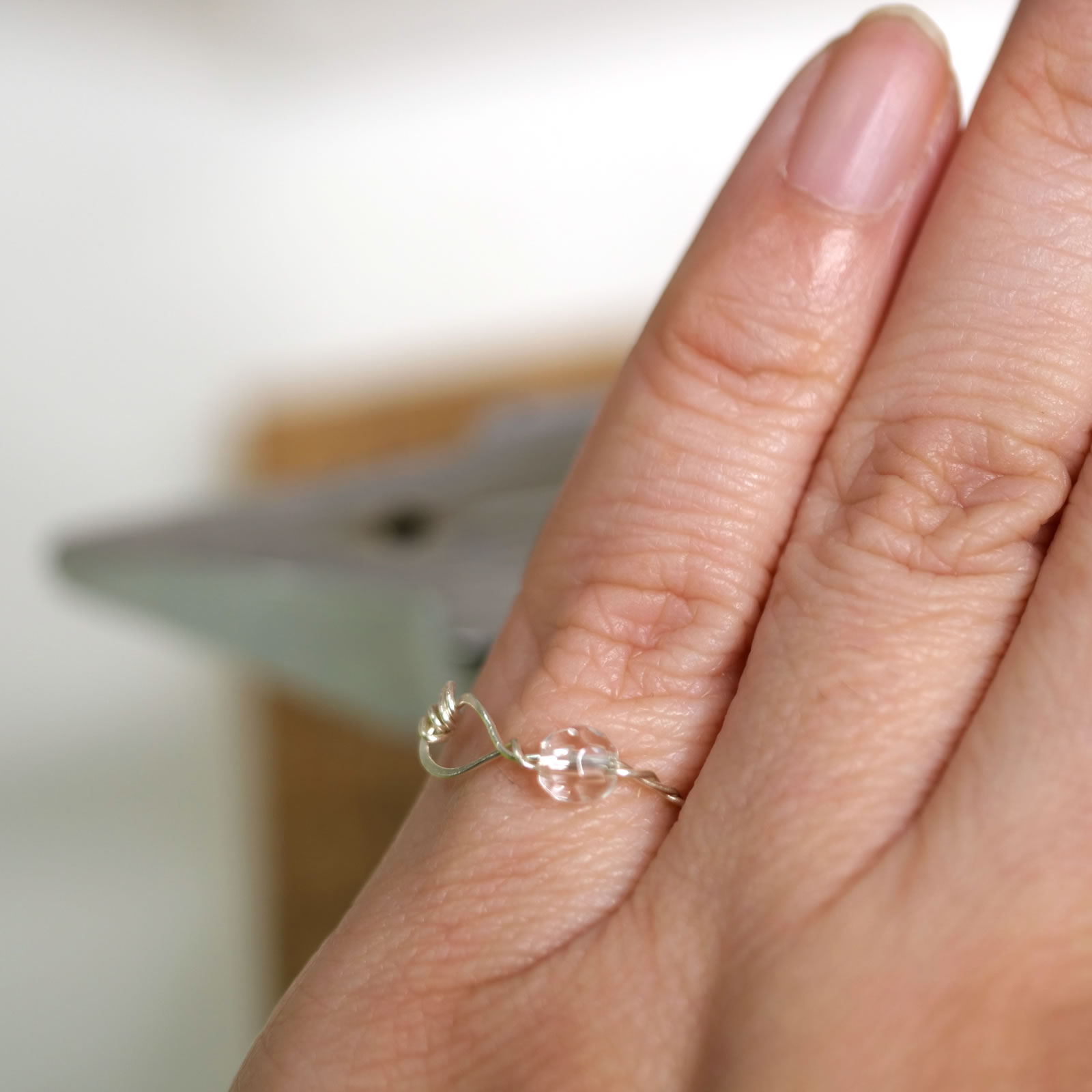水入り水晶のルースをワイヤーで巻きました。ナイロンジョープライヤーを使ったら、ぐるぐる渦巻きが綺麗にできたよー♪